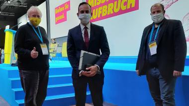 „Mission Aufbruch“ war das Motto des Bundesparteitags der Freien Demokraten in Berlin. An dem Parteitag nahmen mit Uwe Ewen (Bad Zwischenahn - Ofen) und dem Kreisvorsitzenden der FDP Ammerland Michael Koch (Wiefelstede – Spohle) auch zwei ammerländer Delegierte teil. Ermöglicht wurde die Veranstaltung durch die Einhaltung strenger Hygieneregeln, darunter Maskenpflicht bei allen Wahlgängen und abseits des fest zugewiesen Sitzplatz, Abstandsregelungen und vorgegebene Laufwege, sowie Desinfektionsmöglichkeiten allen Ortes.